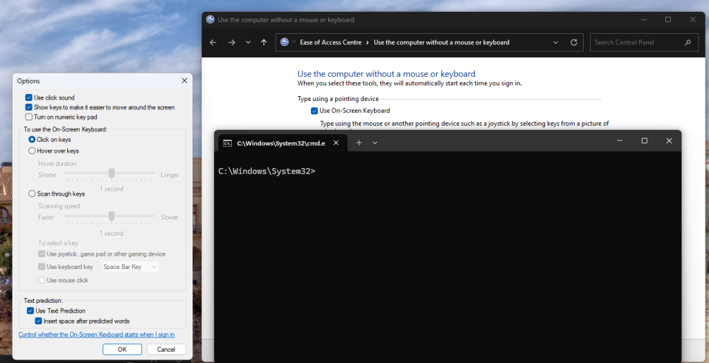 A windows pop-up shows, allowing you to customise the On-Screen Keyboard options. These options have no obvious security impact. But then I noticed something…
