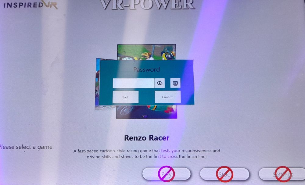 Likewise, the “Settings” button existed on all the other Movie Power VR arcade machines I encountered, such as the VR Space Racing Simulator.