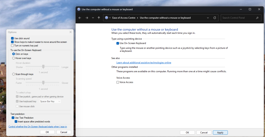 Control whether the On-Screen Keyboard starts when I sign in” is blue! As we have all been pre-programmed to know with computers, blue text is a link, but a link to what?